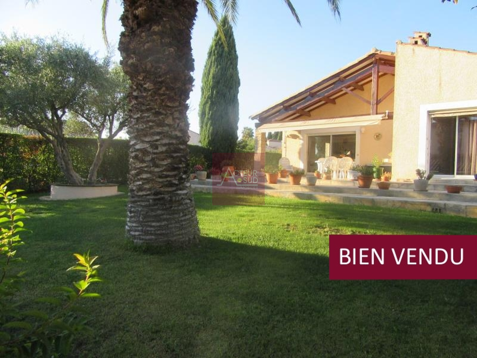 PRODUIT VENDU! Exclusivité ! Rare ! Belle maison de plain-pied 130m² hab. + grand garage/atelier, très beau terrain arboré de 800m² au calme, séjour 40m² expo sud, grande cuisine équipée. Parfait état, secteur résidentiel. A saisir ! Classe énergie : C