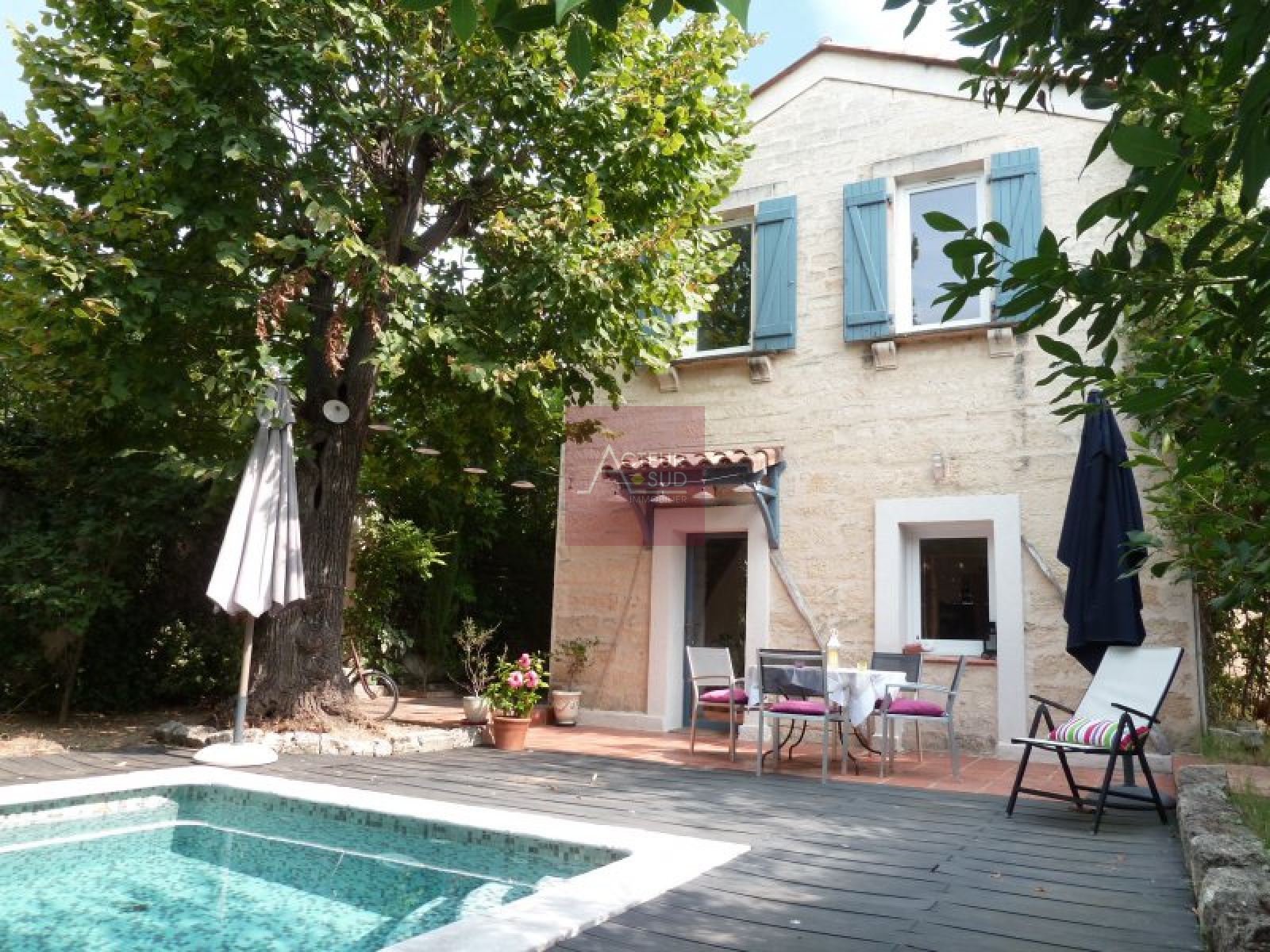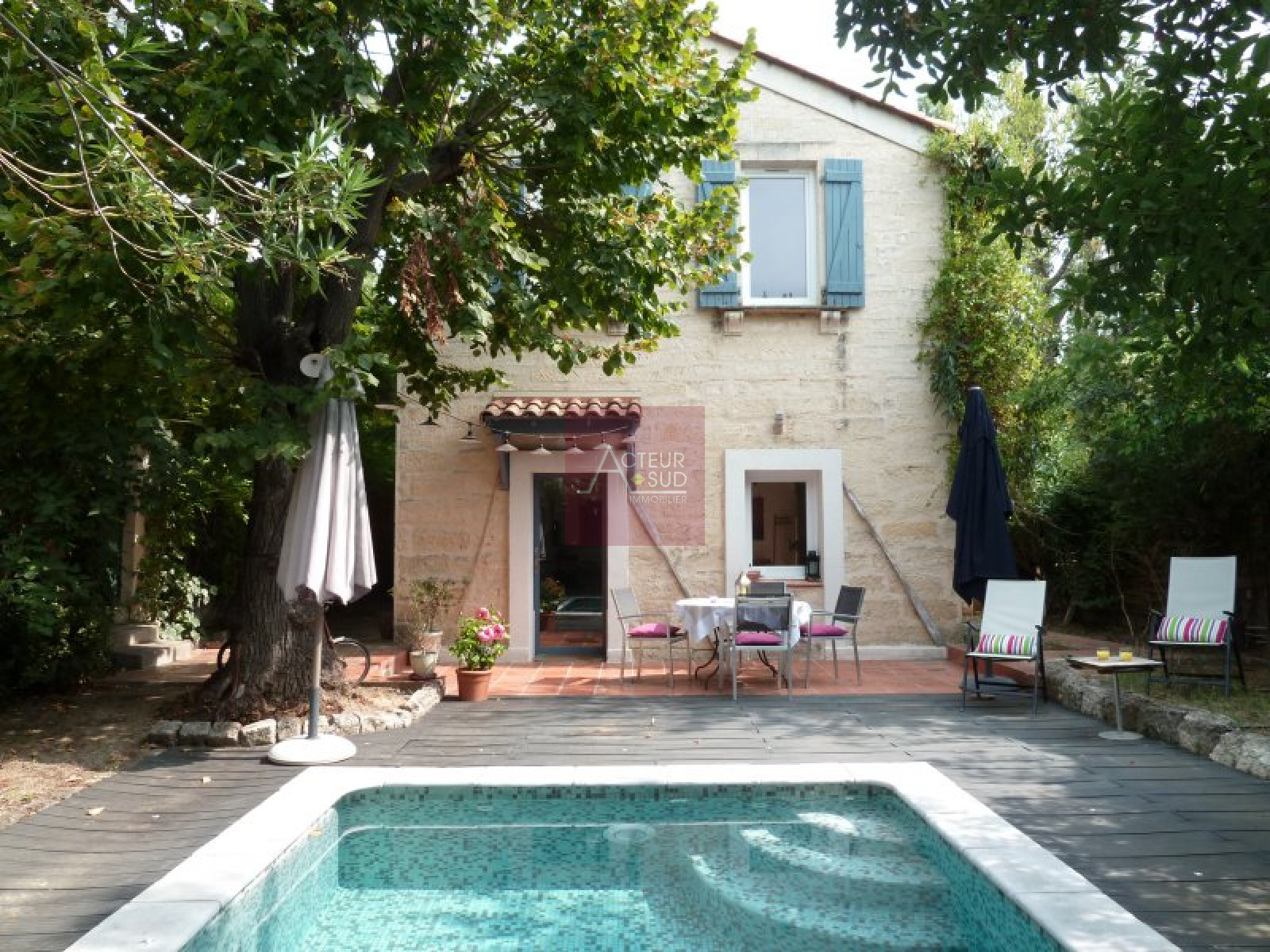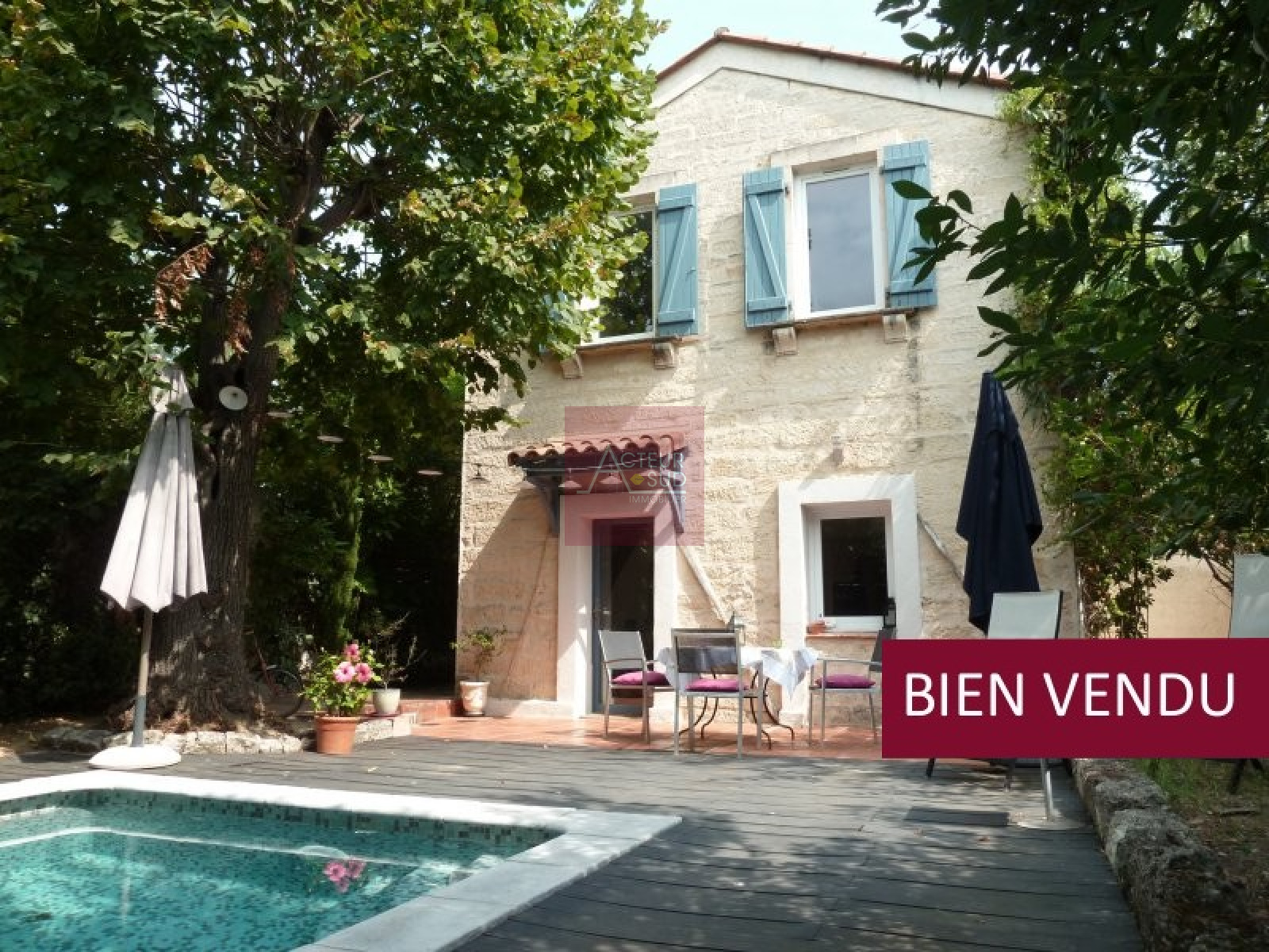 PRODUIT VENDU! Exclusivité! Coup de coeur ! Adorable mazet rénové de 90m² hab. sur joli jardin intime et arboré avec terrasse et piscine. Séjour expo Sud, cuisine équipée, 3 chambres, dépendances et parkings. Terres cuites au sol, pierres apparentes, cheminée, ... Beaucoup de cachet et le charme de l'ancien, au calme. Rare !! Classe énergie: E