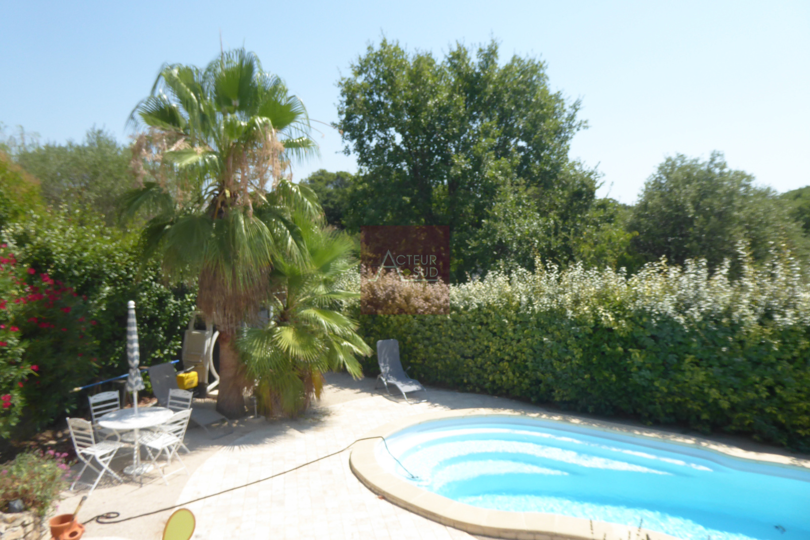 PRODUIT VENDU! EXCLUSIVITÉ! Très belle maison T5, 134 m² habitables sur terrain arboré de 600 m² avec piscine, au calme. Séjour double avec cuisine équipée, 4 chambres, bureau, 2 SDB, terrasse couverte, garage 28 m². Parfait état! Très bon niveau d'équipement. A saisir!