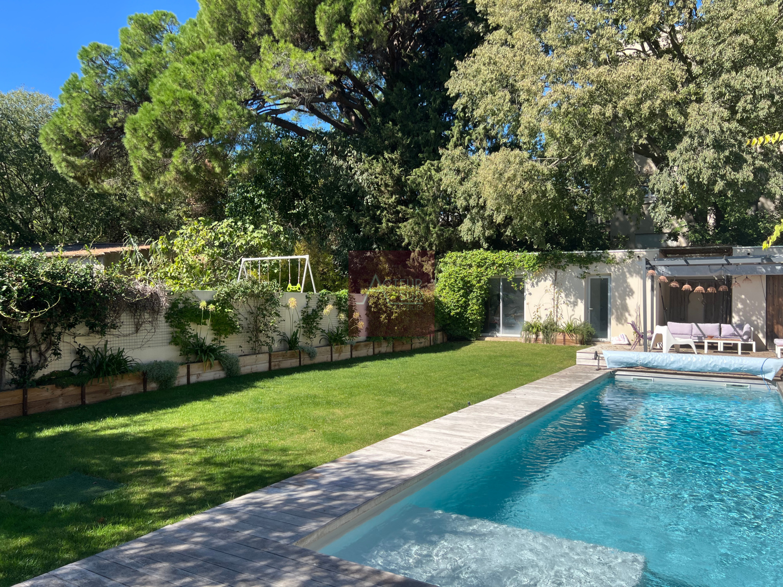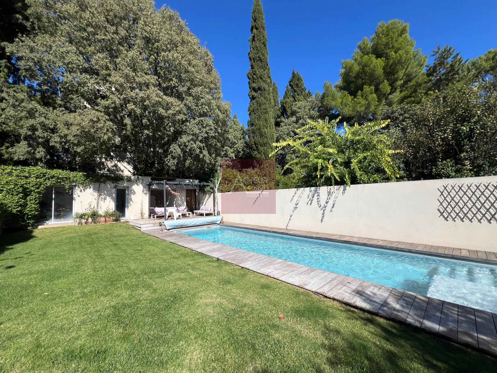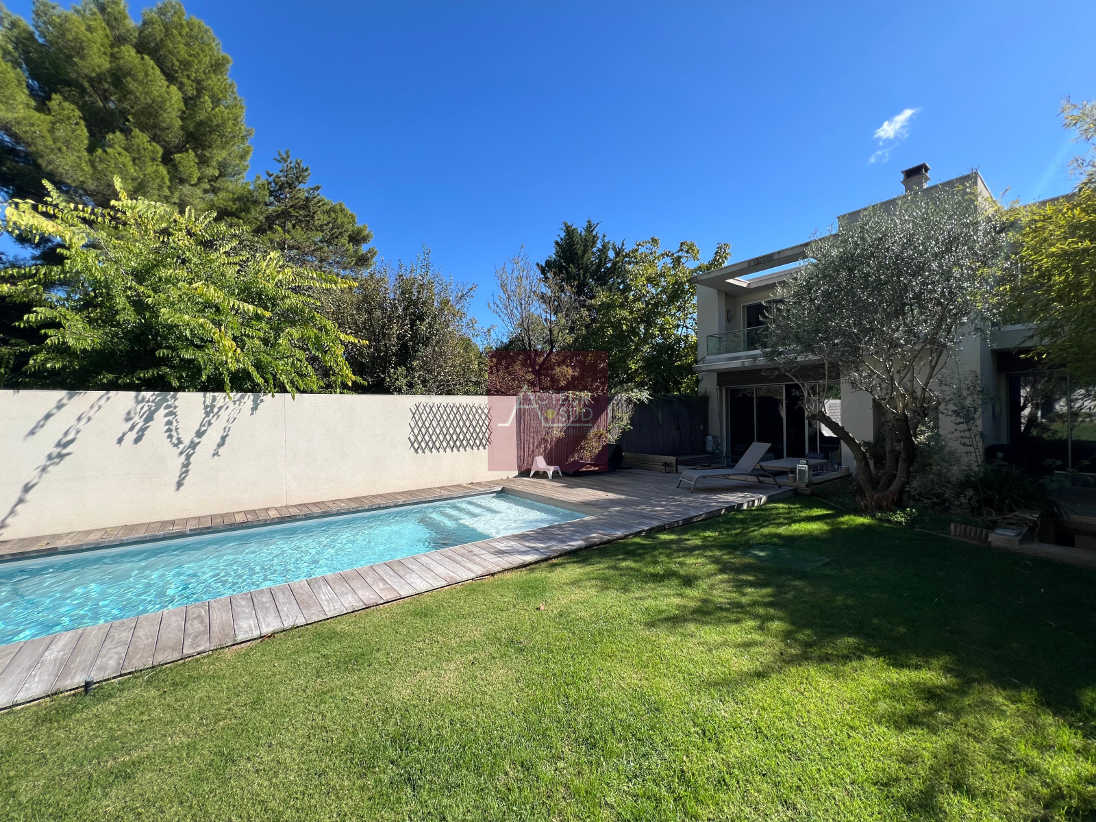 PRODUIT VENDU! Co-exclusivité ! Unique! Dans un environnement exceptionnel et résidentiel, superbe maison contemporaine de 256m² habitables + dépendances sur un magnifique jardin clos et arboré de 600m² avec piscine et pool-house. Très belle pièce à vivre de 100m² avec cheminée, bénéficiant de larges baies vitrées, beaux volumes, cuisine équipée Bulthaup, 4 chambres avec salles d'eau privatives et terrasses, dont une suite parentale de 50m², salon cinéma, buanderie, garage, atelier et parkings extérieurs. Prestations de qualité, climatisation, parquet, jardin arboré et calme. Proche centre ville, Tramway, commerces et écoles. Produit rare! A voir! Classe énergie : C