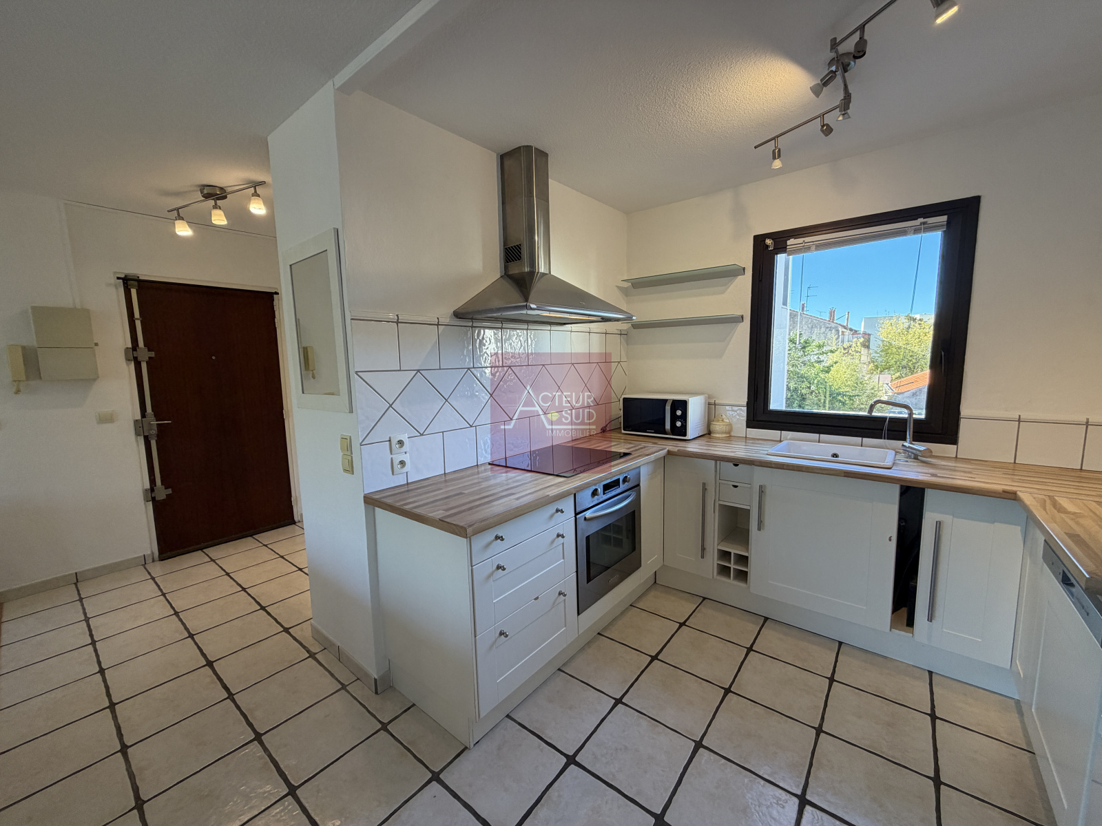 TBE - expo N/O - sol carrelage - Mur Peint Aménagée / équipée : frigo/four/lave vaisselles / plaques + hotte