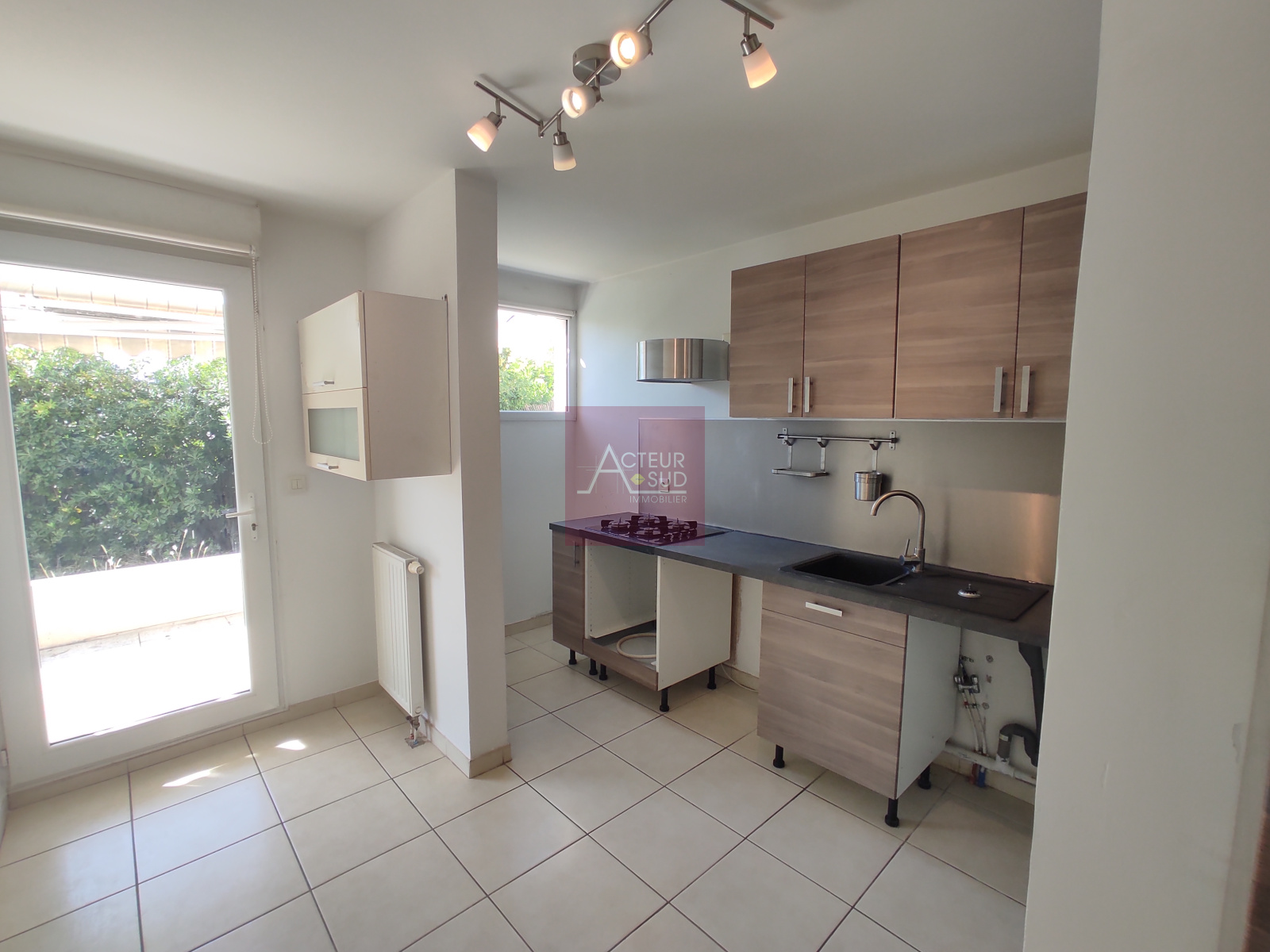 Exposition sud-sud ouest, cuisine équipée, meubles hauts et bas + E, accès terrasse/jardin