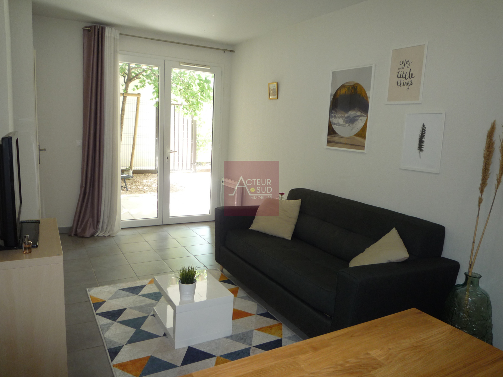 Exposition sud, très bon état, sol : carrelage, terrasse et jardin